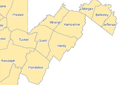Morgan, Berkeley and Jefferson. Some include eight: Pendleton, Grant, Hardy, Mineral, Hampshire, Morgan, Berkeley and Jefferson. Maybe, the panhandle itself has a panhandle.